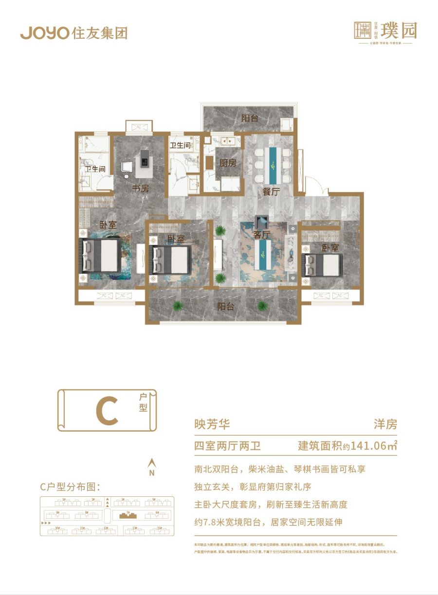 - 主力户型:130、133、136㎡三房、141、160㎡四房
