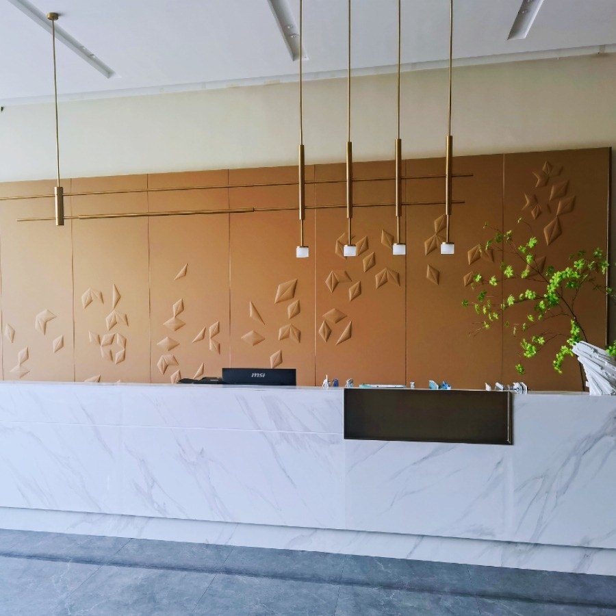 穿过雅致的示范区,缓缓步入接待前厅,迎客松扑面而来。晶莹而又富有艺术感的灯饰与沉稳的背景墙碰撞,让空间层次更加鲜明,既打破了沉闷、单调,又在一开场便勾勒出大气的东方韵味。空间以层层递进之态,引导访客缓步向内。